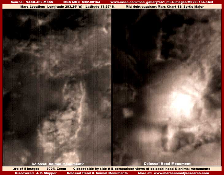 The presence of all this image tampering in this particular MOC image, but without covering this massive monument civilization evidence and it even framing and accentuating the ability to see the animal monument, suggests that this most obvious of civilization evidence was intentionally left out to bring attention not only to this particular monument evidence but to the narrow-angle imaging of this region of Mars by someone within the secrecy ranks. Someone possibly rebelling and not agreeing with total secrecy on this issue.